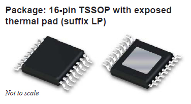 A2550 采用带有外置散热板的 16 针 TSSOP 封装(封装 LP)。该封装为无铅封装,引脚框以 100% 雾锡电镀。