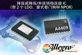 A4409K是Allegro公司的一款多输出稳压器产品,A4409K是可调节频率降压或降压-升压预稳压器,带有2种LDO、窗式看门狗计时器和NPOR,本站介绍了A4409K的封装应用图解、特点和优点、功能等,并给出了与A4409K相关的Allegro元器件型号供参考。
